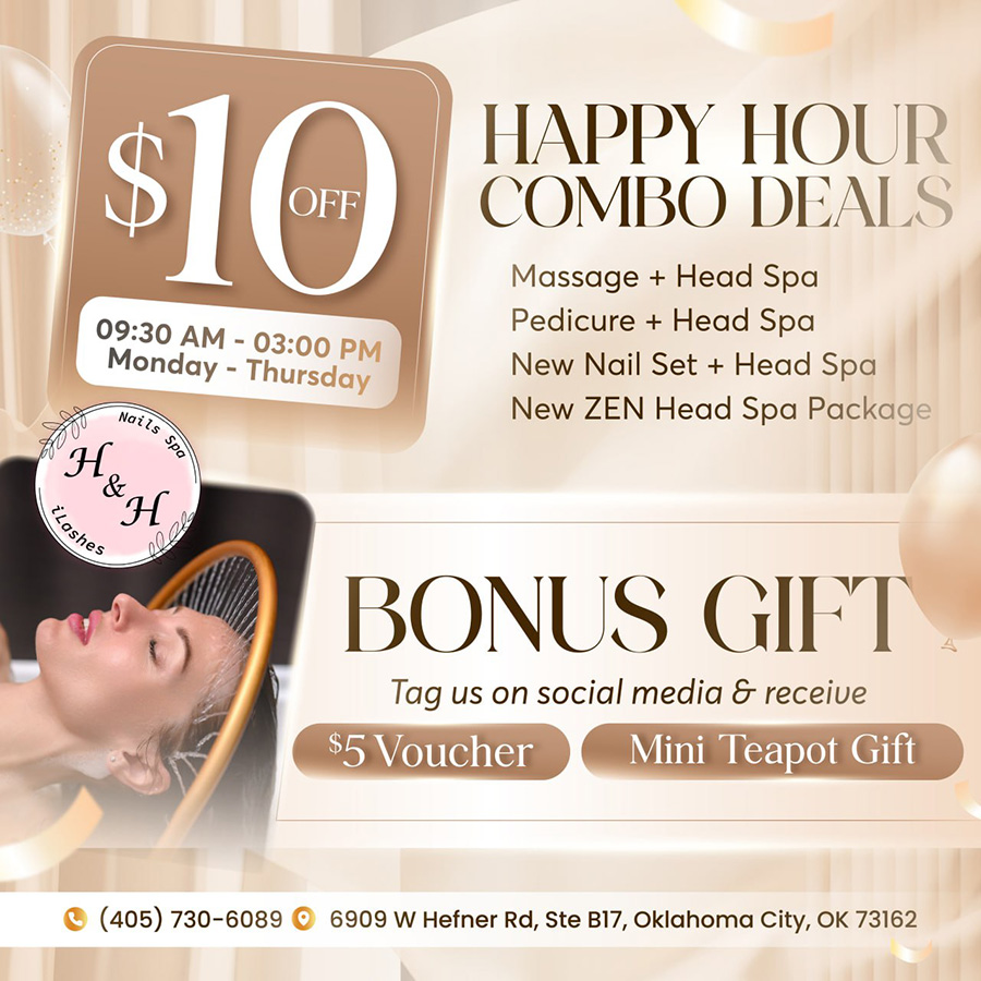 Discover luxurious beauty at special prices at H&H Nails Spa & iLashes in the area 73162! Enjoy top-notch services from skilled technicians in an elegant, safe environment. Pamper yourself with our premium services without the premium price tag.